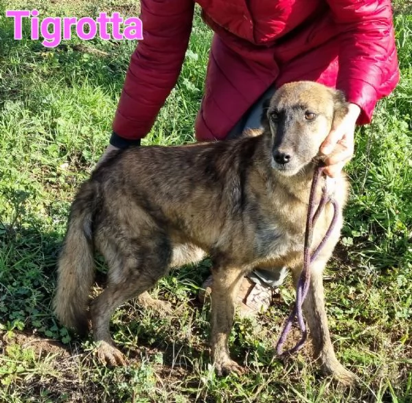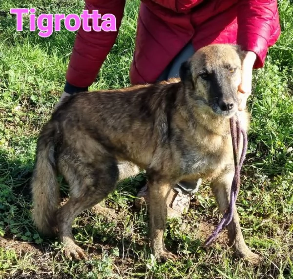 ciao, sono tigrotta, una cagnolina di circa 9 anni , esteticamente posso somigliare ad una pastore tedesco o ad un malinoise, ma sono una meticcia di taglia media (circa 24 kg). caratterialmente sono molto dolce, ho imparato ad andare al guinzaglio e mi piace moltissimo interagire con i miei simili.nonostante abbia 9 anni, godo di un'ottima salute ed ho tanto amore da donare!!ovviamente sono microchippata, vaccinata, spulciata, sverminata e sterilizzata. sono anche esente da malattie mediterranee come filaria, herlichia e [hidden] potermi conoscere ed ulteriori informazioni contattare roberta [hidden](se non risponde subito potete mandare un messaggio e sarete prontamente ricontattati)