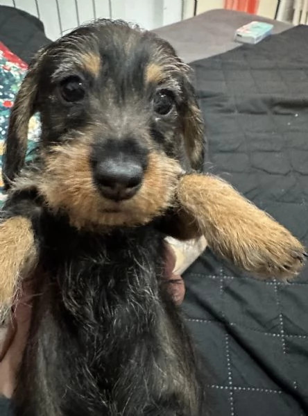 cucciolo di bassotto tedesco pelo ruvido taglia nana nato il 31 ottobre è disponibile dal 30 dicembre . verrà consegnato con sverminazioni, due vaccini , microchip e pedigree . genitori alta genealogia e testati esenti .